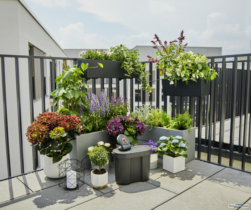 Akár nyaralni mész, akár csak elfoglalt az otthoni életed, a GARDENA AquaBloom+Víztartály készlettel akár 20 növényt is megbízhatóan és egyenletesen öntözhetsz az erkélyen vagy teraszon. A napelemes, víztartályos öntözőkészlet nem igényel áramcsatlakozást. A napelem és az újratölthető akkumulátorok kombinációja garantálja a megbízható öntözést az egész szezonban. 14 előre beállított öntözési program közül választhatsz, és meghatározhatod a növények számára optimális vízmennyiséget. Mindezt vízcsatlakozás nélkül, a beépített szivattyúnak és a csatlakoztatott víztartálynak köszönhetően. Mivel a készletben minden szükséges alkatrész, beleértve az elemeket is, megtalálható, így az automata öntözőrendszert azonnal telepítheted és használhatod. Az AquaBloom +Víztartály készlet egyesíti az optimális funkcionalitást a fenntarthatósággal. A 10,5 literes víztartályban akár 12 napra elegendő víz is elfér. A kapacitás további tartályok csatlakoztatásával bővíthető. A készlet 80 százalékban újrahasznosított anyagból készült, vagyis ez egy fenntartható öntözési lehetőség. A tartály aljára szűrőt lehet rögzíteni, így a maximális vízfelhasználás érhető el. Az üres víztartályt praktikus tárolási lehetőséged nyújt a készlet egyes elemei számára a téli/őszi szezonban. A GARDENA AquaBloom+Víztartály készlet modern és innovatív kialakítása nemcsak időtállóvá teszi az egész rendszert, hanem tökéletesen illeszkedik a modern terasz és erkély stílusához is. Távolléti növénygondozás. Független öntözés szobanövények számára.