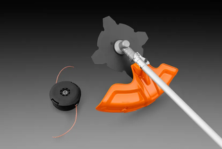 A vágófelszerelés kombinált védőeleme a fűvágó késsel és a vágófejjel egyaránt használható a különböző feladatokhoz.