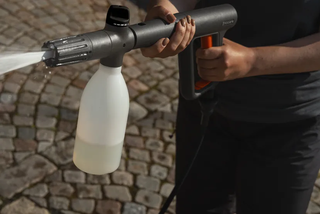 3 az 1-ben többfunkciós szórópisztoly a feladatok közötti egyszerű váltáshoz. Egy egyszerű csavarással cserélhető a fúvóka, és a nagynyomású mosó különböző tisztítási feladatokhoz igazítható.